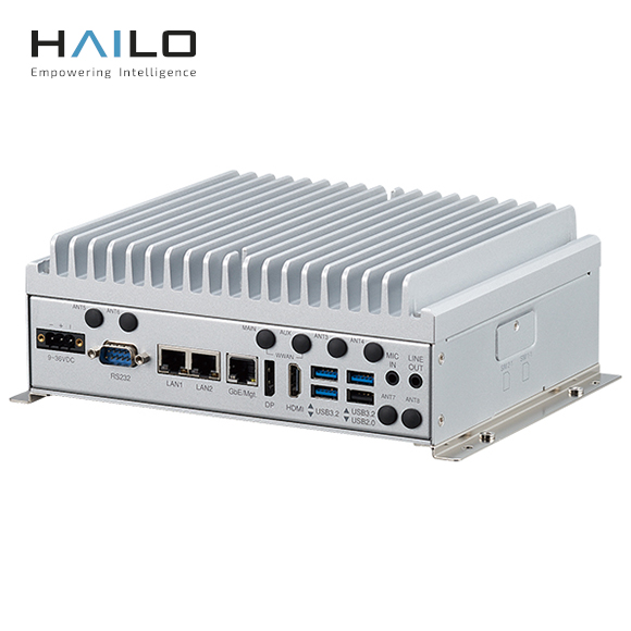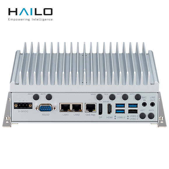 2 x Ses jakı (Çıkış ve MİKROFON girişi)3 x USB 3.2 tip A, 1 x USB 2.0 tip A1 x HDMI, 1 x DP, 4 x PoE+ (2,5 GbE, RJ45), 1 x COM (DB9, RS232), 1 x GbE, 9~36 VDC (3 pimli Phoenix), WWAN için 4 x SMA, 4 x anten deliği ayrılmıştır |